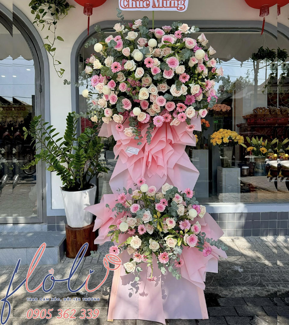 Kệ hoa chúc mừng khai trương tone màu hồng sáng đẹp, FLoLi thực hiện giao khách ở Hà Đông