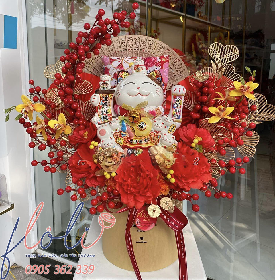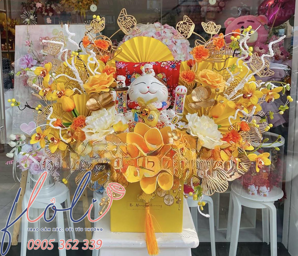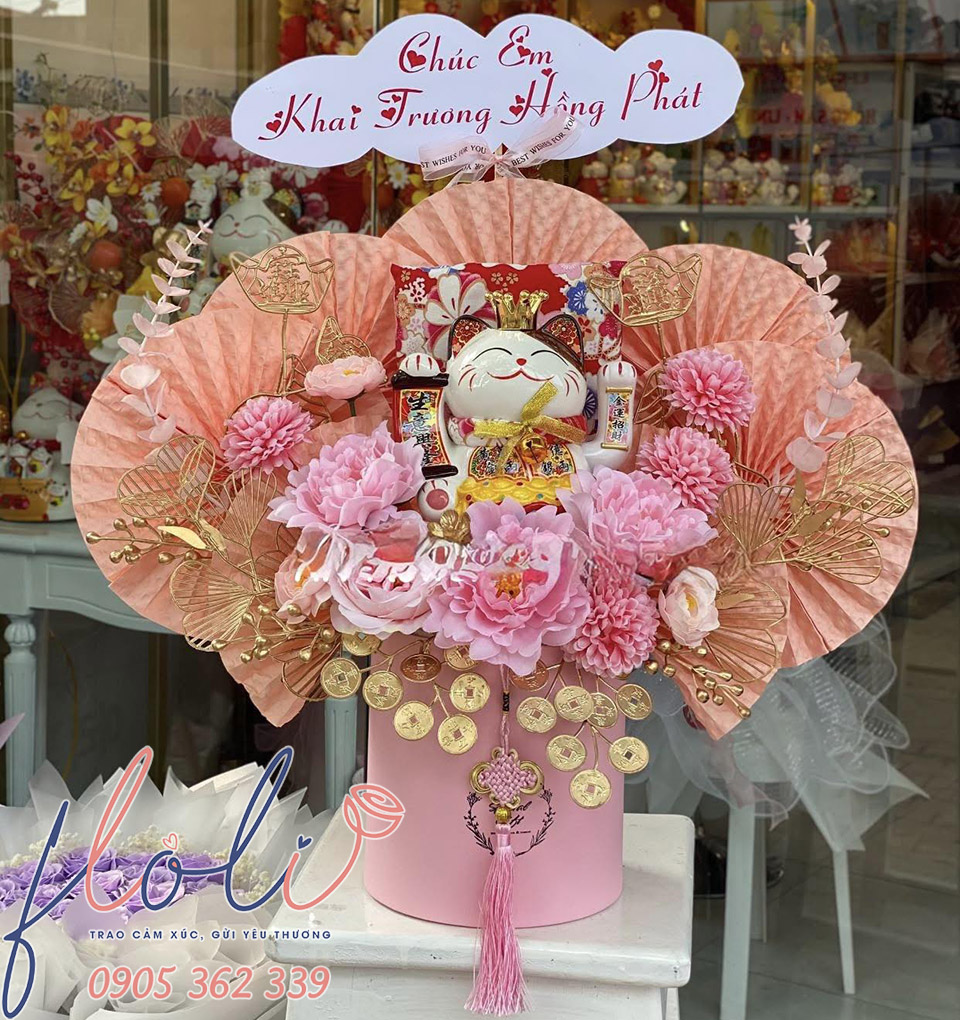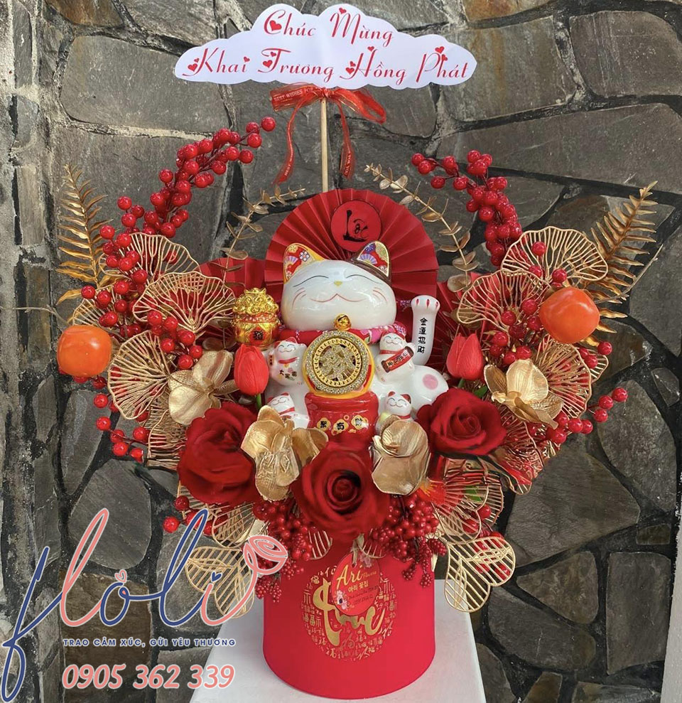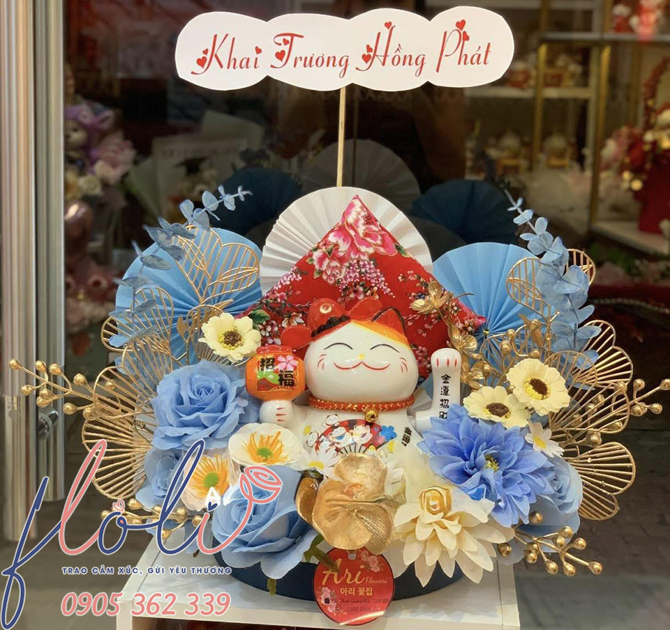 Mèo thần tài chúc mừng khai trương lộc phát được khách hàng đặt FLoLi thực hiện
